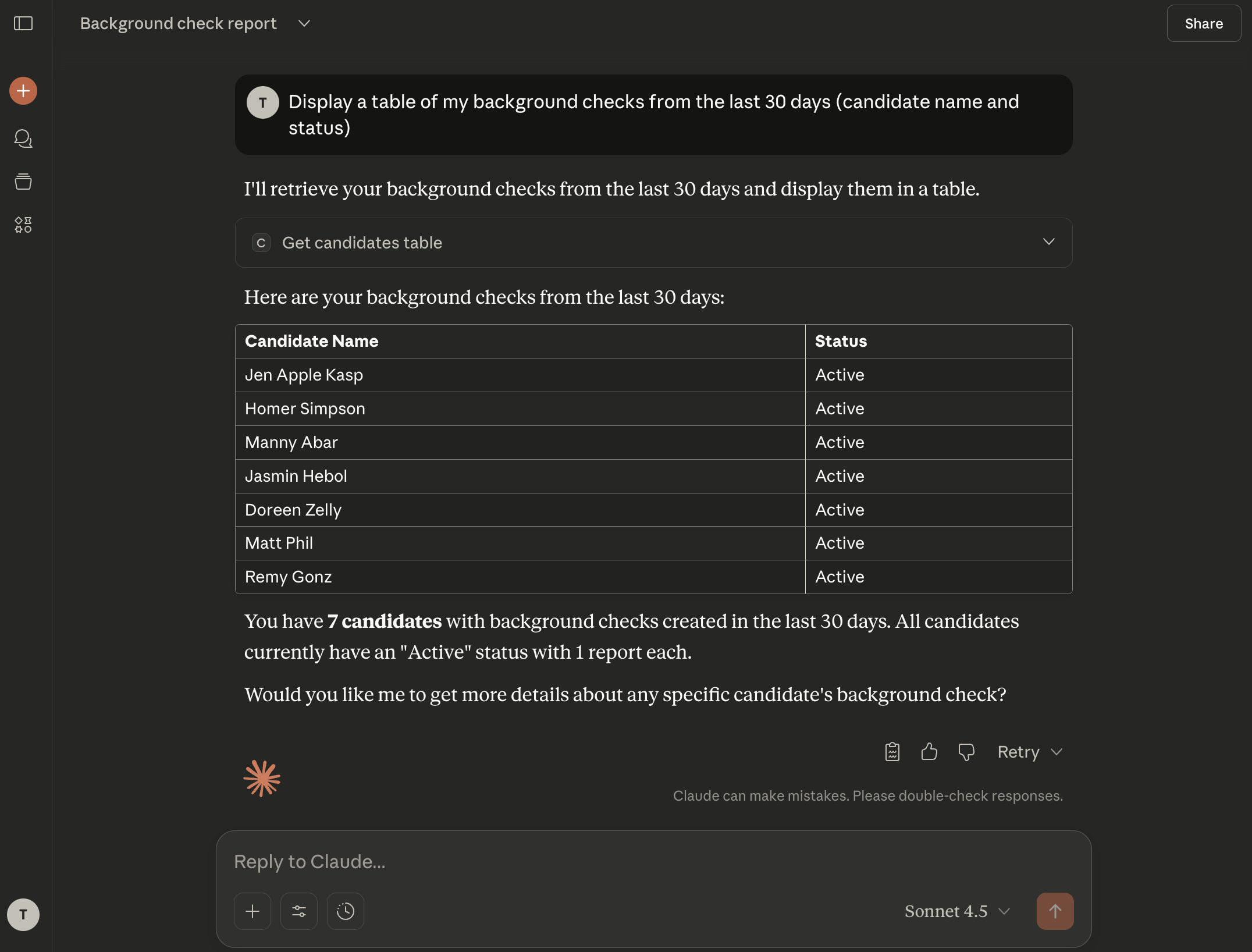 Note: All data returned by the Checkr MCP server has sensitive personally identifiable information (PII) redacted to protect candidate privacy.